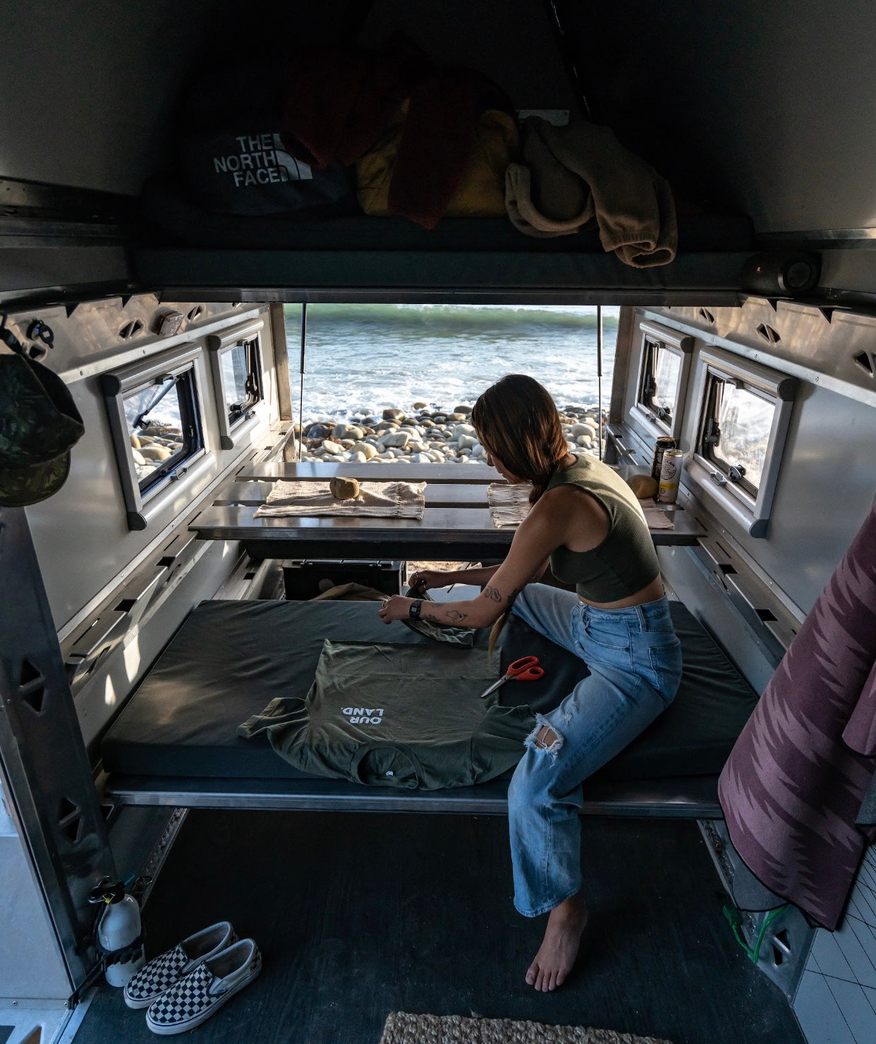 Our RTD, DWELL SHELL, and 4XD have roof rails for mounting gear, solar, or toys. The sleeping space doubles as a cargo space for bedding, skis, or camp chairs. Be ready for adventure (or a nap) from the moment you park.