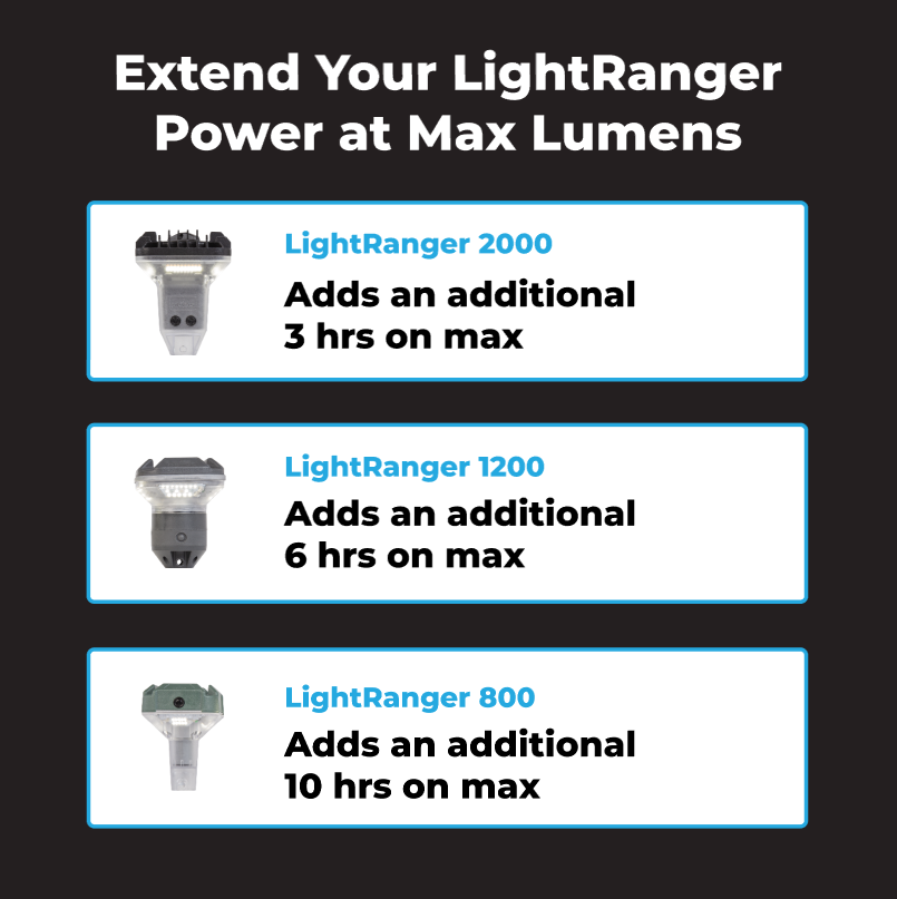 - LightRanger 2000 by 90% + (An additional 3 hrs)