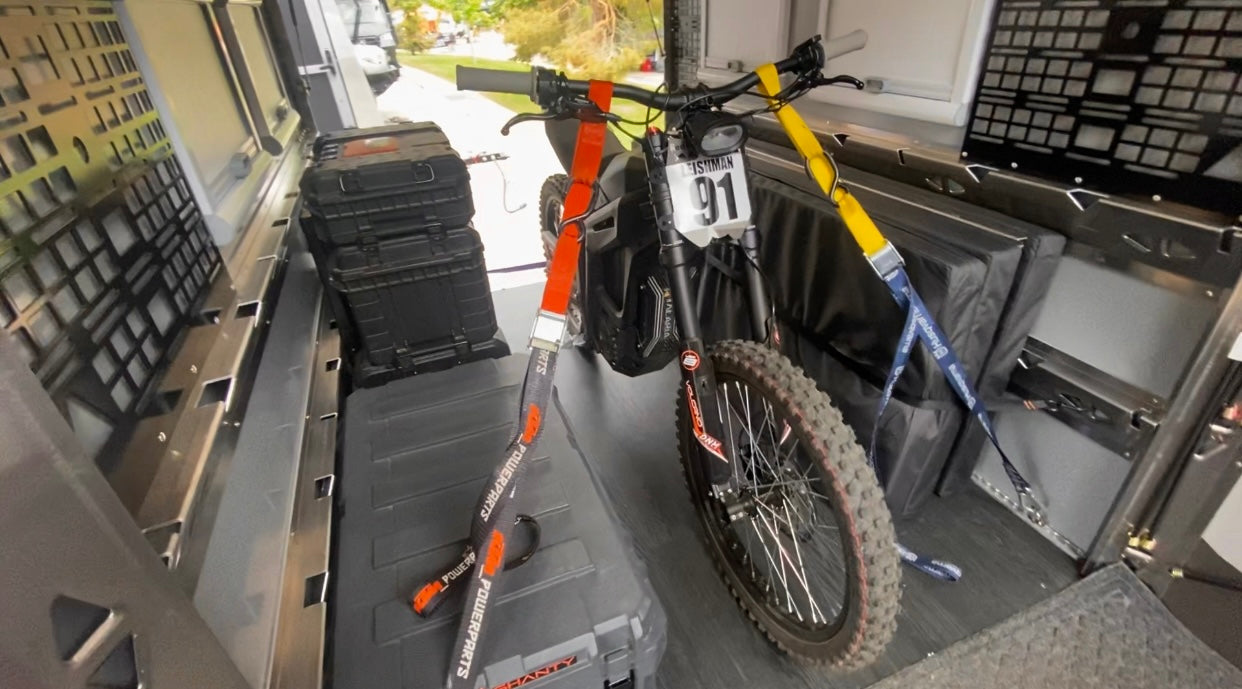 The queen beds are completely modular for hauling mountain bikes, motorcycles, and quads, all while maintaining an upper queen bed in the A-Frame.