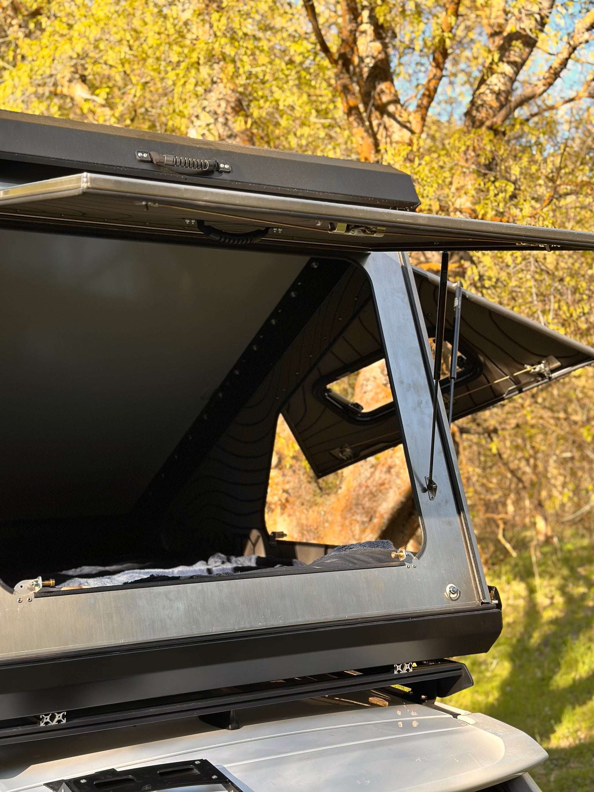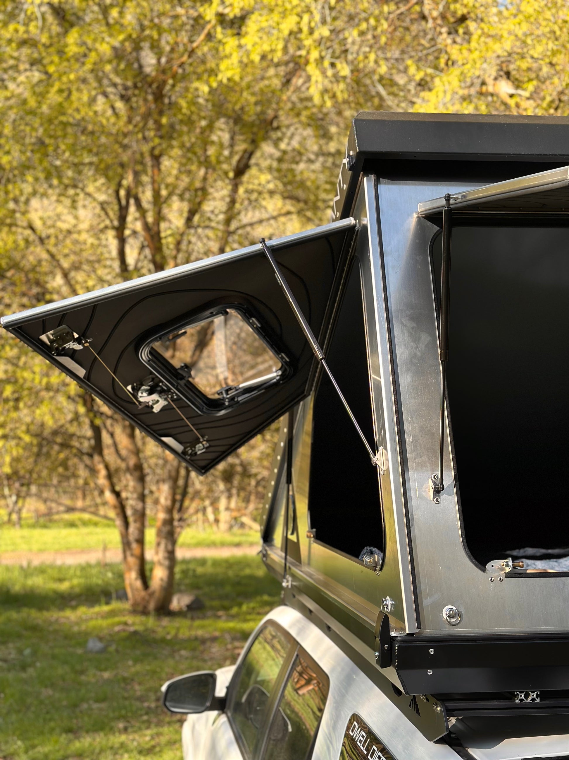 The RTD (Roof Top Dwelling), like a tent, but all hard-sided. It makes for a great addition to any off-road vehicles or trailers with roof top tent mounting capabilities. The RTD is insulated aluminum, no wood or fabric to rot or mold, and doubles as a cargo space. Keep your mattress, sleeping bags, skis, fishing poles, and other gear with you, but without crowding your vehicle.
